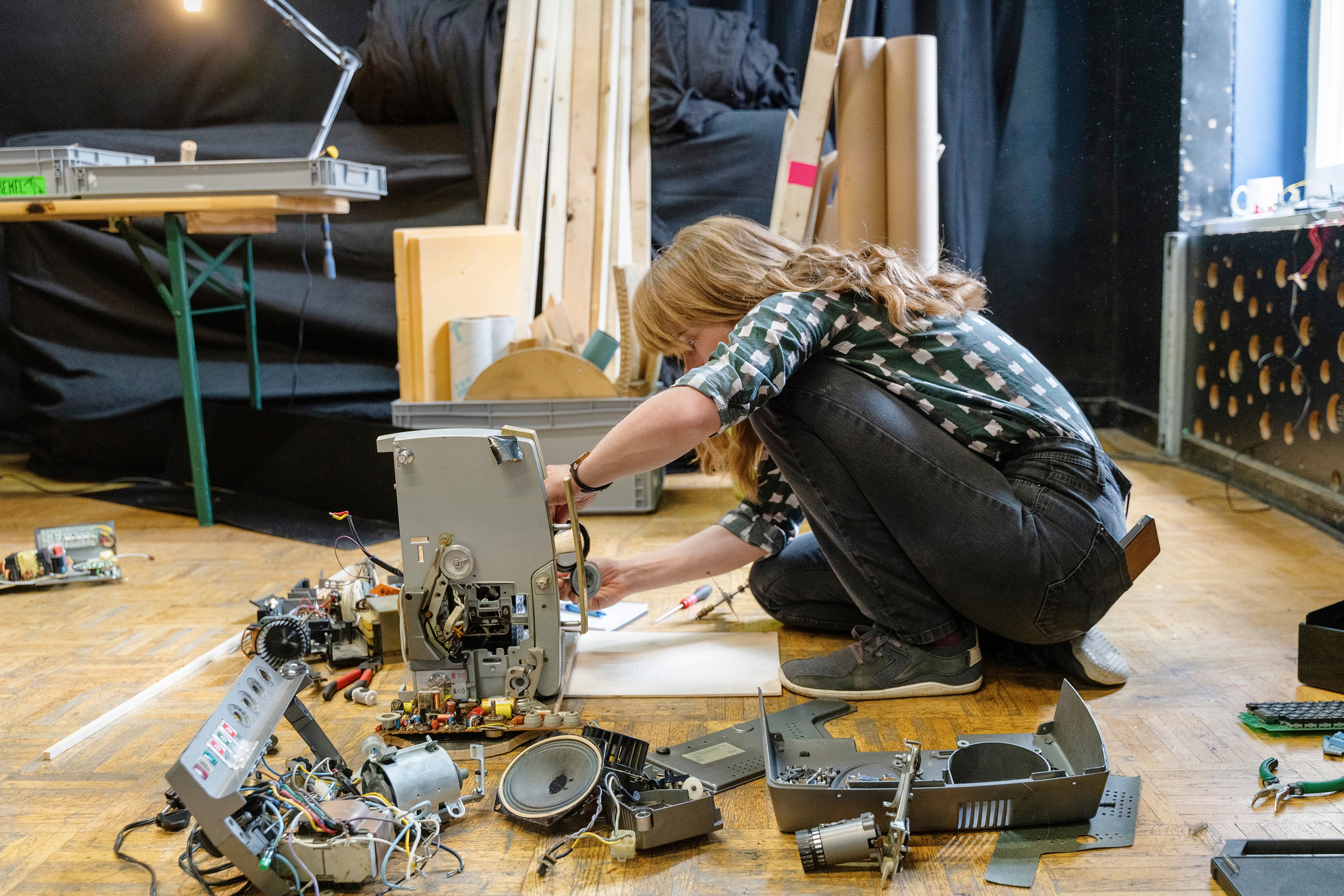 Ganz in diesem Sinne werden die Camp-Teilnehmenden im ersten Teil der Veranstaltung zu Besuchenden eines Tinkertank-Kreativworkshops und erleben dabei zunächst die Perspektive der Personen, die sie später selbst schulen wollen. Ziel ist, den Teilnehmer*innen einen kreativen Umgang mit Technik zu ermöglichen und ihre Interessen und Fähigkeiten am handwerklichen und technischen Tun zu wecken und zu vertiefen. Die Teilnehmenden erleben dabei hautnah zum einen das Thema Making und zum anderen die Steuerung von Kreativprozessen mit, lernen die interdisziplinäre Arbeit an der Schnittstelle zwischen Kunst, Handwerk und Technik kennen und erleben zudem Teambuilding und Teamwork.