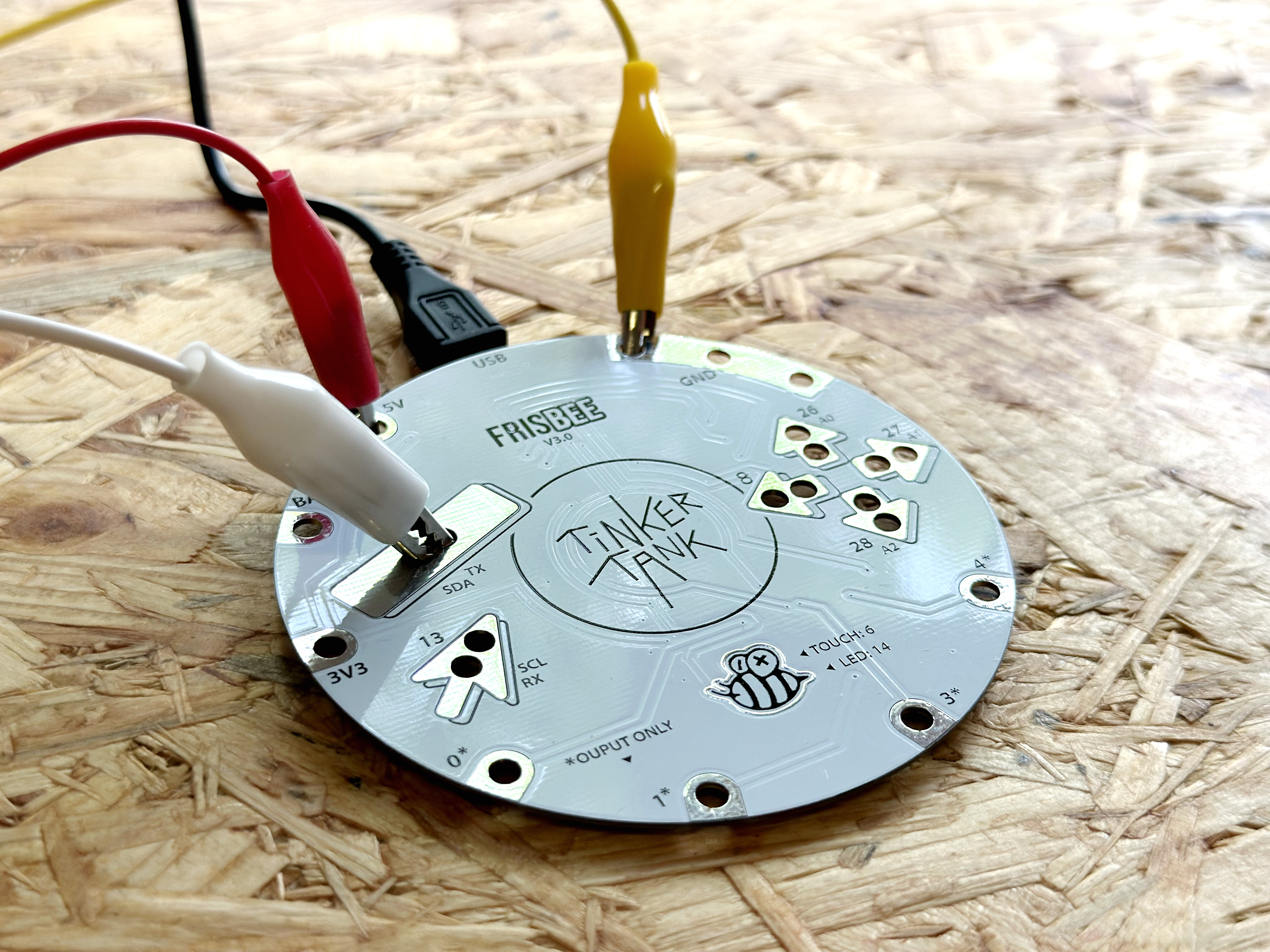 Die Frisbee ermöglicht es, alte Dinge neu zu denken: Ein Staubsauger wird zum Gamecontroller, ein Lautsprecher reagiert auf Lärm, ein Stück Elektroschrott beginnt zu blinken, zu rattern oder zu singen. Was genau passiert, entscheidet jedes Projekt für sich. Die Frisbee bildet dabei die Verbindung zwischen Idee, Material und Technik. Sie ist Herzstück, Schnittstelle und Möglichmacherin zugleich. In ihr steckt ein Mikrocontroller und viel praktisches Wissen. Vor allem aber bietet sie das Potenzial, aus Zufall und Fundstücken etwas ganz Neues entstehen zu lassen. Die Frisbee ist kein fertiges Produkt, sondern Teil eines offenen Entwicklungsprozesses. Sie wächst mit jedem Einsatz, mit jeder Idee und mit allen, die damit arbeiten. Es gibt bereits mehrere Versionen, jede mit ihren eigenen Besonderheiten und neuen Möglichkeiten.