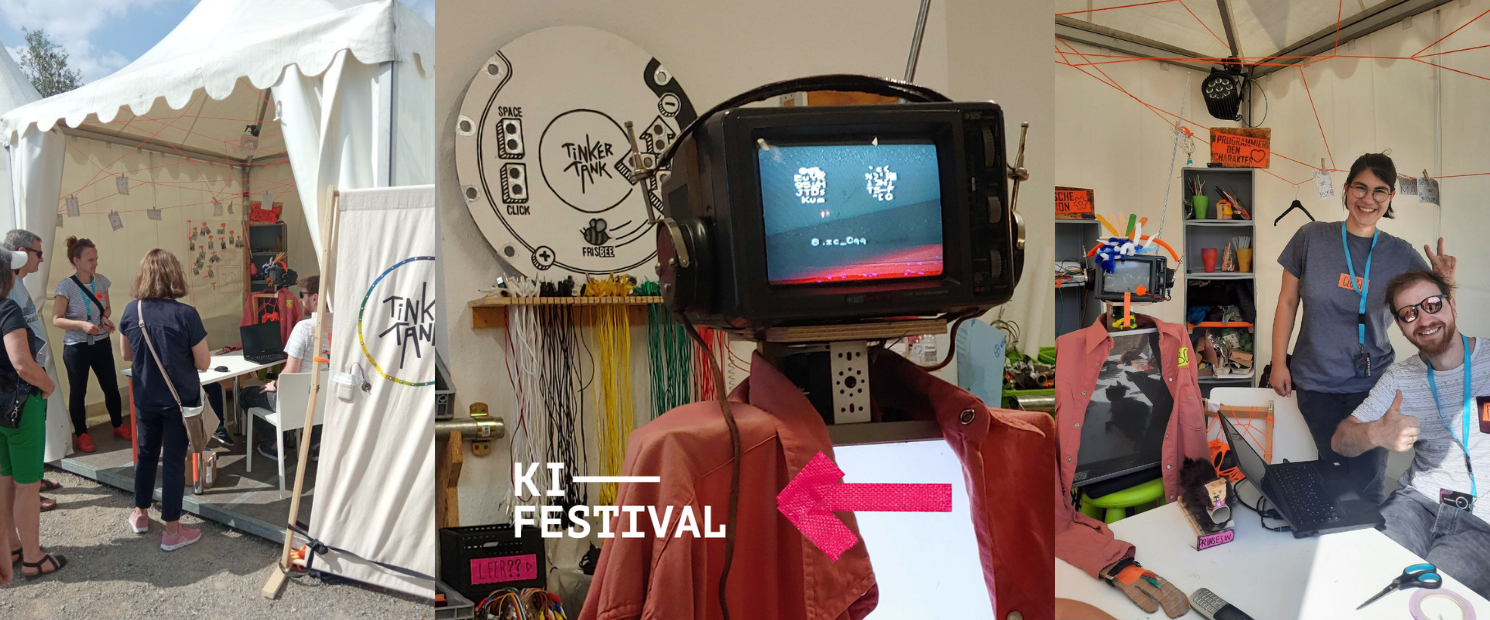 Braucht Intelligenz einen Körper? Über welche Interfaces können wir mit K.I.s kommunizieren? Damit haben wir gemeinsam mit den Besuchenden am Tinkertank-Stand beim KI-Festival Heilbronn 2023 experimentiert . Aus Elektroschrott & altem Spielzeug bauten wir einer K.I. eine physische Form. In die Welt der neuronalen Netzwerke, machine learning und large language models ging es, indem die Besuchenden den Charakter der K.I. ändern konnten und gelernt haben, wie K.I.-Anwendungen funktionieren. Sie konnten erleben, wie der Körper der K.I. die Interaktion zwischen Mensch & Maschine beeinflusst. Der Workshop verband spielerisch Kreativität & Technik und ermöglichte hands-on ergebnisoffene Kreativprozesse.