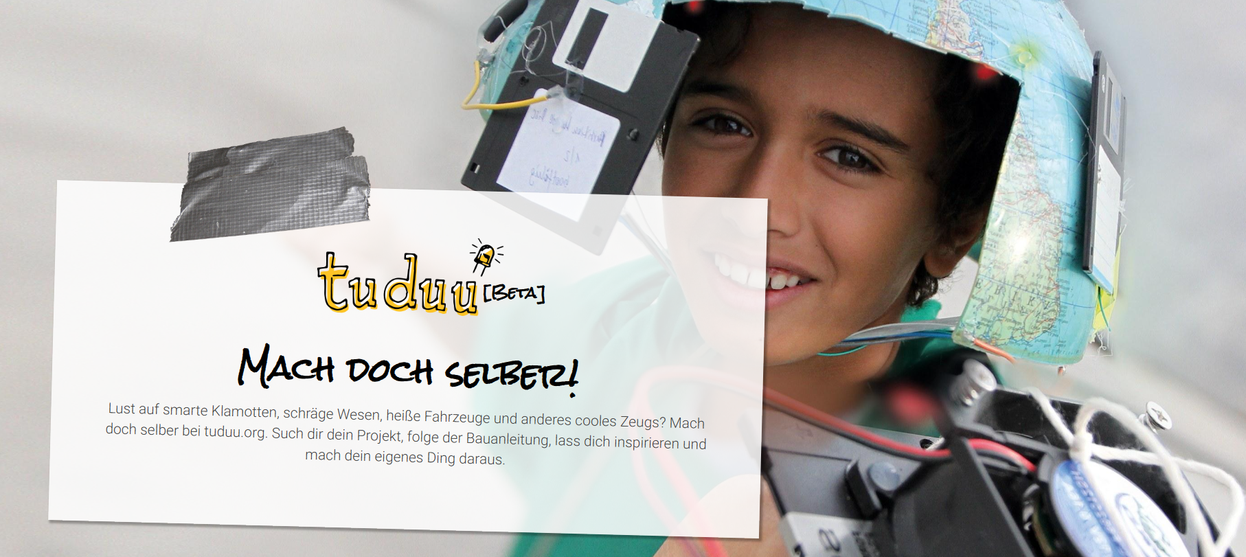 tuduu.org ist die digitale Plattform für Kids, Teens und Erwachsene, die basteln, bauen, tüfteln wollen, neugierig auf Ungewöhnliches sind und mit ihrem eigenen Erfindungsreichtum nicht vor Computern und Elektronik Halt machen. Dabei bietet tuduu.org phantasievollen und zeitgemäßen Freiraum für die spielerische Auseinandersetzung mit kreativen, technischen und handwerklichen Erfordernissen und Fähigkeiten von Kindern und Jugendlichen.