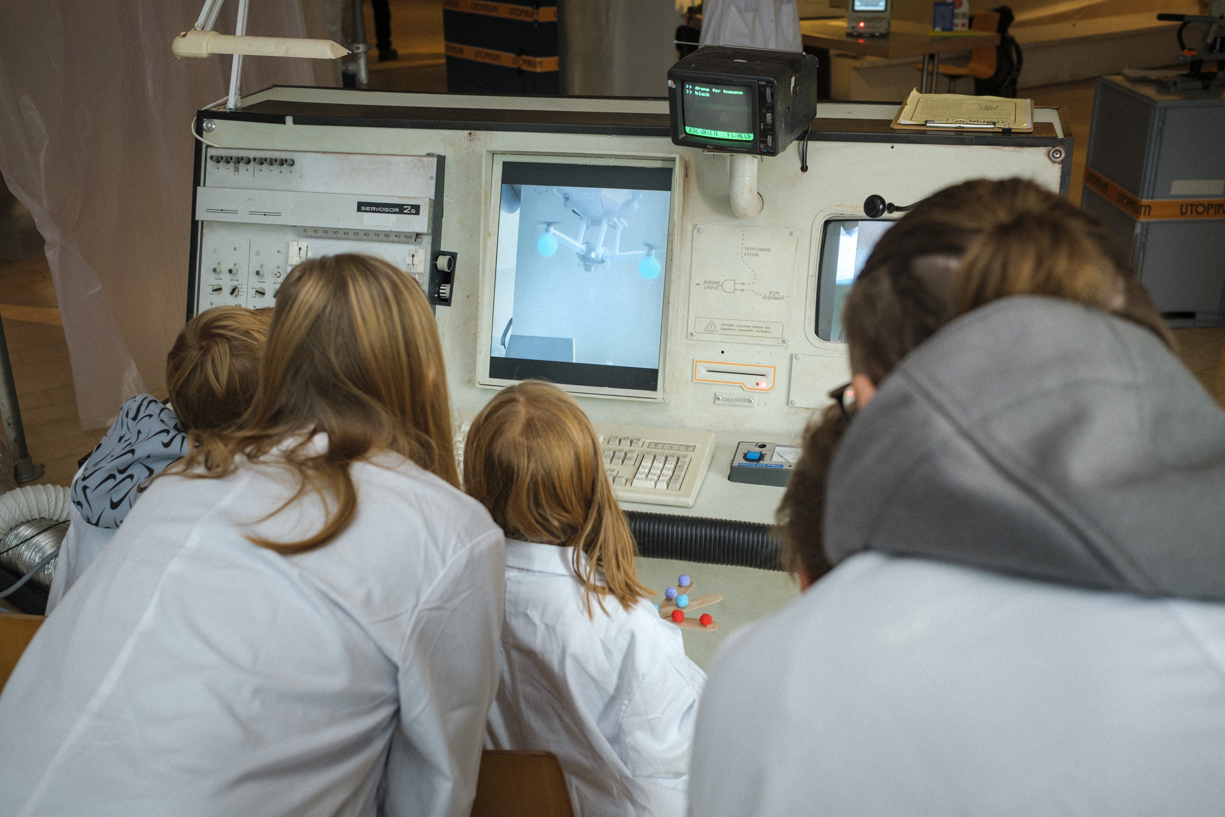 Tritt ein ins Utopikum und erforsche mögliche und unmögliche, denkbare und undenkbare Zukünfte. In diesem retro-futuristischen Labor wirst du selbst zur Zukunftslaborant:in, bastelst mit Objekten von gestern und entwirfst Visionen von morgen.