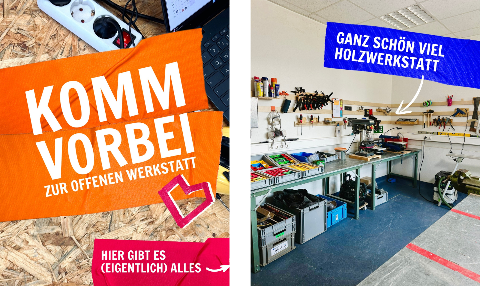 Wichtig: Wenn ihr zum ersten Mal da seid, müsst ihr an der allgemeinen Werkstatteinführung teilnehmen (donnerstags 18 Uhr und samstags 11 Uhr).